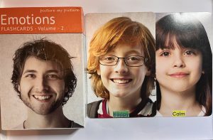 Feelings and emotions cards  = Are a great resourrse that allows ther young person to identify and name the emotions thaey are experienceing.
